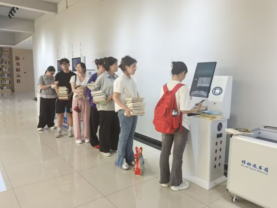 活动伊始, 吸引了众多学生参与打卡借阅,同学们纷纷前往书库,寻找自己相关专业与感兴趣的图书,为了确保师生都能及时找到自己心仪的图书,图书馆工作人员认真介绍书库图书摆放规律,示范自助借阅流程等,使同学们体验到了一场别开生面的阅读体验。