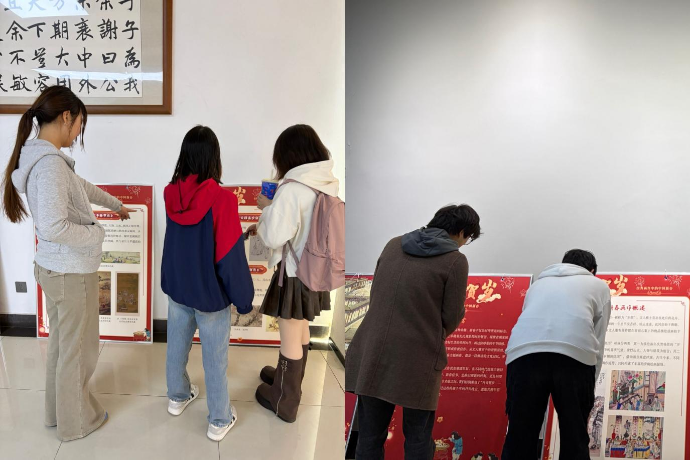 “原来古人过年也会放爆竹、逛灯会,这些画里的细节太生动了!”一位观展的同学感慨道,“以前只在课本里见过‘岁朝清供’,这次在图书馆亲眼看到画作,才真正感受到传统文化的厚重与鲜活。”不少老师也表示,展览将传统文化与校园生活巧妙融合,既是一次美育熏陶,也是一场生动的文化思政课,让师生在欣赏艺术的同时,增强了文化认同感与自豪感。