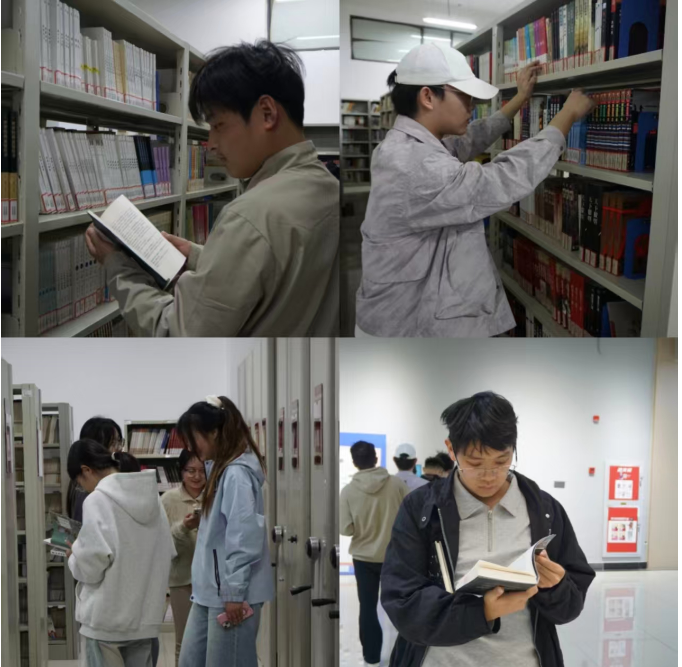 活动伊始,参与同学准时抵达现场完成签到,确认参与信息后,正式开启本次阅读寻宝之旅。在自主选书环节,同学们穿梭于整齐排列的书架之间,细细翻阅、精心挑选,在浩如烟海的书籍中寻觅心仪读物,按照活动要求完成图书借阅,沉浸式感受纸质书籍带来的文字力量。随后,全体同学移步图书馆301室,开启静心阅读模式,暂时抛开外界纷扰,全身心投入文字世界,在墨香中沉淀自我、汲取知识。