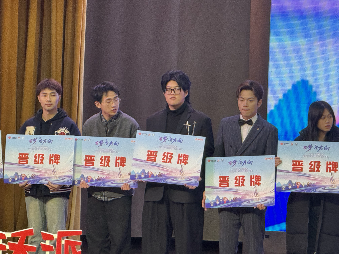 本次比赛竞争激烈,现场座无虚席,气氛热烈,分数段在8.5—9.35分共61人,前十二名选手晋级,第十二名选手得分为9.28分。来自我校23级能动专业崇瑶、24级自动化专业徐天昊、24级电气专业王睿翔代表学校参赛。他们的表演各具特色,其中崇瑶翻唱的歌曲《炁》稳定、自信的展现了他的唱功和游刃有余的舞台表现能力,最终以9.30的分数获得全场第七,并成功晋级。