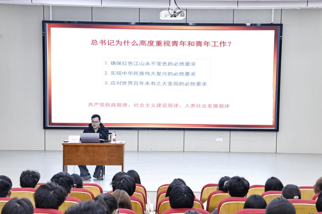 授课中,郭天宇围绕习近平总书记关于青年工作的重要思想核心要义,以 “七个明确” 为脉络展开系统导学,结合党的二十大精神、2026 年全国两会精神及青年工作最新论述,从青年工作的战略地位、时代主题、职责使命等核心维度,深入解读这一重要思想的丰富内涵与实践要求,明晰新时代青年工作的前进方向、实践路径和方式方法,引导团干部深刻认识到,坚持党的领导是做好青年工作的根本保证。
