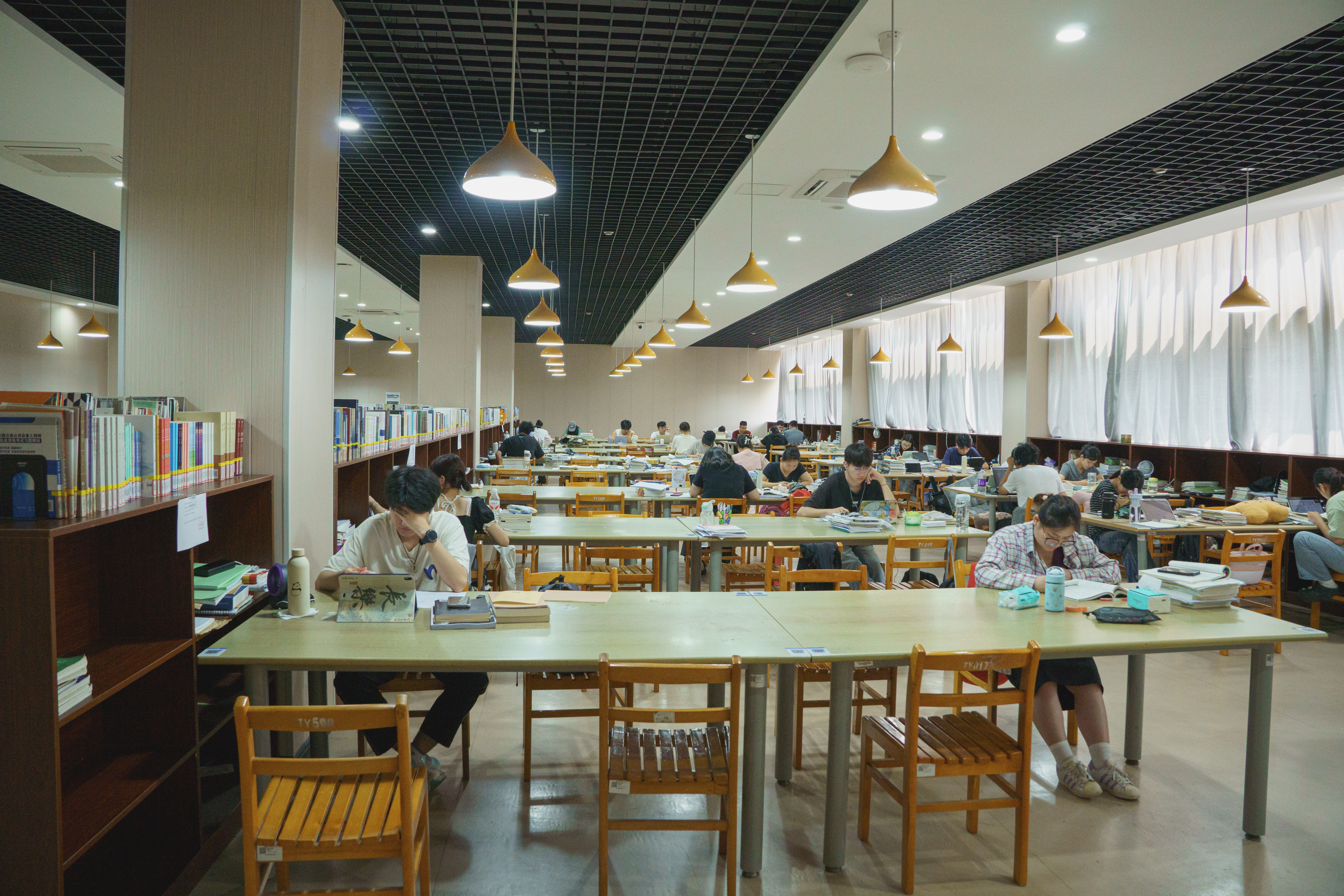 改造后的图书馆,其设计理念融合了现代与传统,创新与实用并重。内部结构则更加注重开放性与互动性,书架排列灵活多变,既适合个人沉浸式阅读,也便于团体讨论与分享。为了满足不同读者的需求,图书馆还增设了多个功能区。考研自修室是专为考研、考公的学生设置的,它可以让学生在一个熟悉的座位上安心学习。自然科学阅览室、社科阅览室配备了相关专业的书籍,便于学生使用阅览。教师阅览室专门为教师们提供学习研究的空间。学术研究区则提供了更加适合团队合作的环境,满足深层次研讨的需求。报刊阅览室订购了4.6万册期刊,为师生提供前沿信息等。
