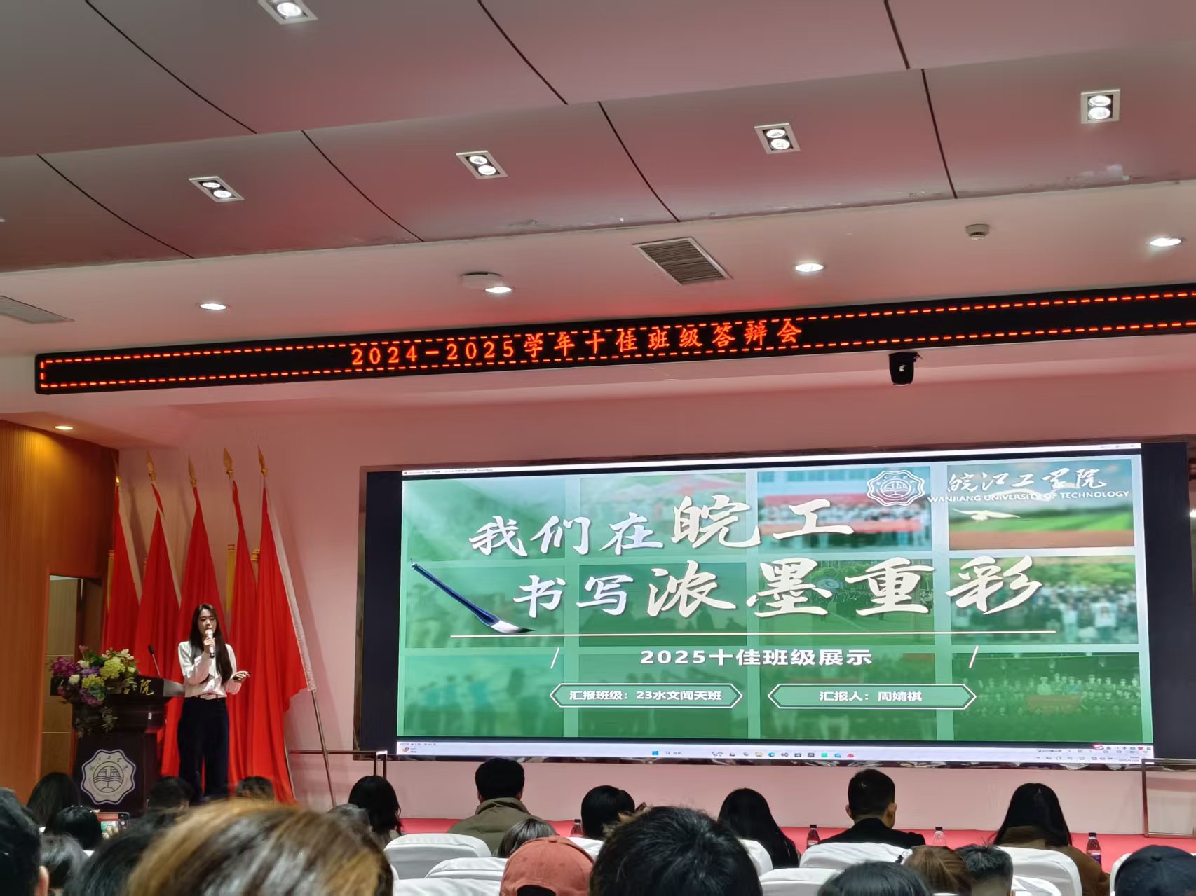 11月26日下午,我校2024-2025学年“十佳班级”答辩会圆满落幕。来自全校8个学院的优秀班级同台竞技,通过风采展示、成果汇报等环节,全方位呈现班级建设的丰硕成果,最终11个班级(含并列)脱颖而出,获评“十佳班级”。