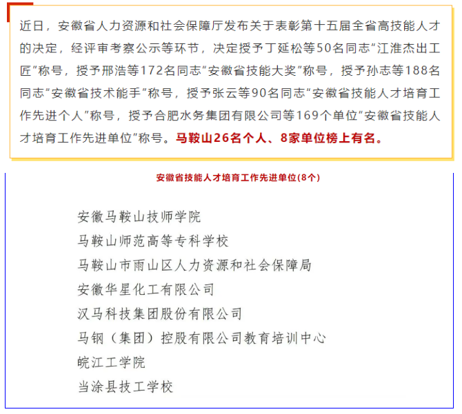 喜报!皖江工学院荣获安徽省技能人才培育工作先进单位