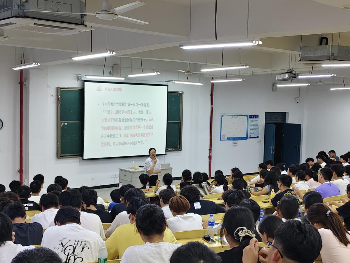 张高桢以“坚定理想信念,做新时代青年”为主题开展入党启蒙教育。她从《中国共产党章程》切入,详细解读入党条件,针对新生关注的入党流程,张高桢梳理出“提交申请—确定积极分子—培养考察—成为发展对象—党校培训—吸收预备党员—预备考察—转正”8个关键环节。指出大学生要端正自己的入党动机,严格要求自己,不断从自己思想、学习、工作、生活入手,不断提高自己的思想觉悟、思想品质和工作能力,以自己的实际行动向党组织靠拢,争取早日入党,成为一名光荣的共产党员。张高桢则引导学生积极向上,高标准,严要求。