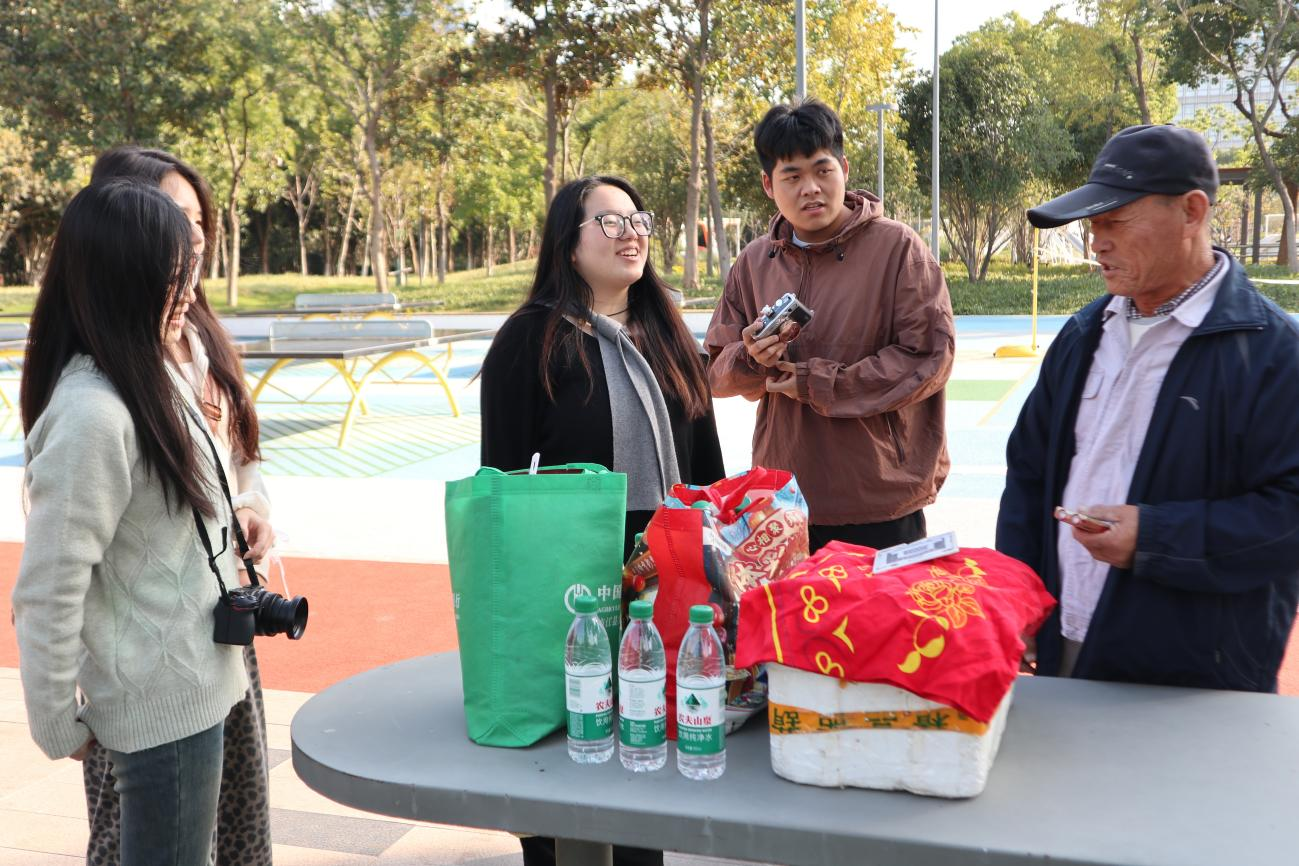 抵达南湖体育公园后,同学们迅速投入志愿服务。他们主动与园内休憩、锻炼的老年人亲切交流,送上节日祝福,并邀请他们参与拍摄。一位刚退休、正享受闲暇时光的老人欣然应邀,在同学们的引导下,他精神矍铄地面对镜头,一张充满活力的肖像被成功捕捉。手捧即刻生成的照片,老人脸上绽放出欣喜的笑容:“我好久没拍过这么快就能拿到的照片了,谢谢你小伙子!”