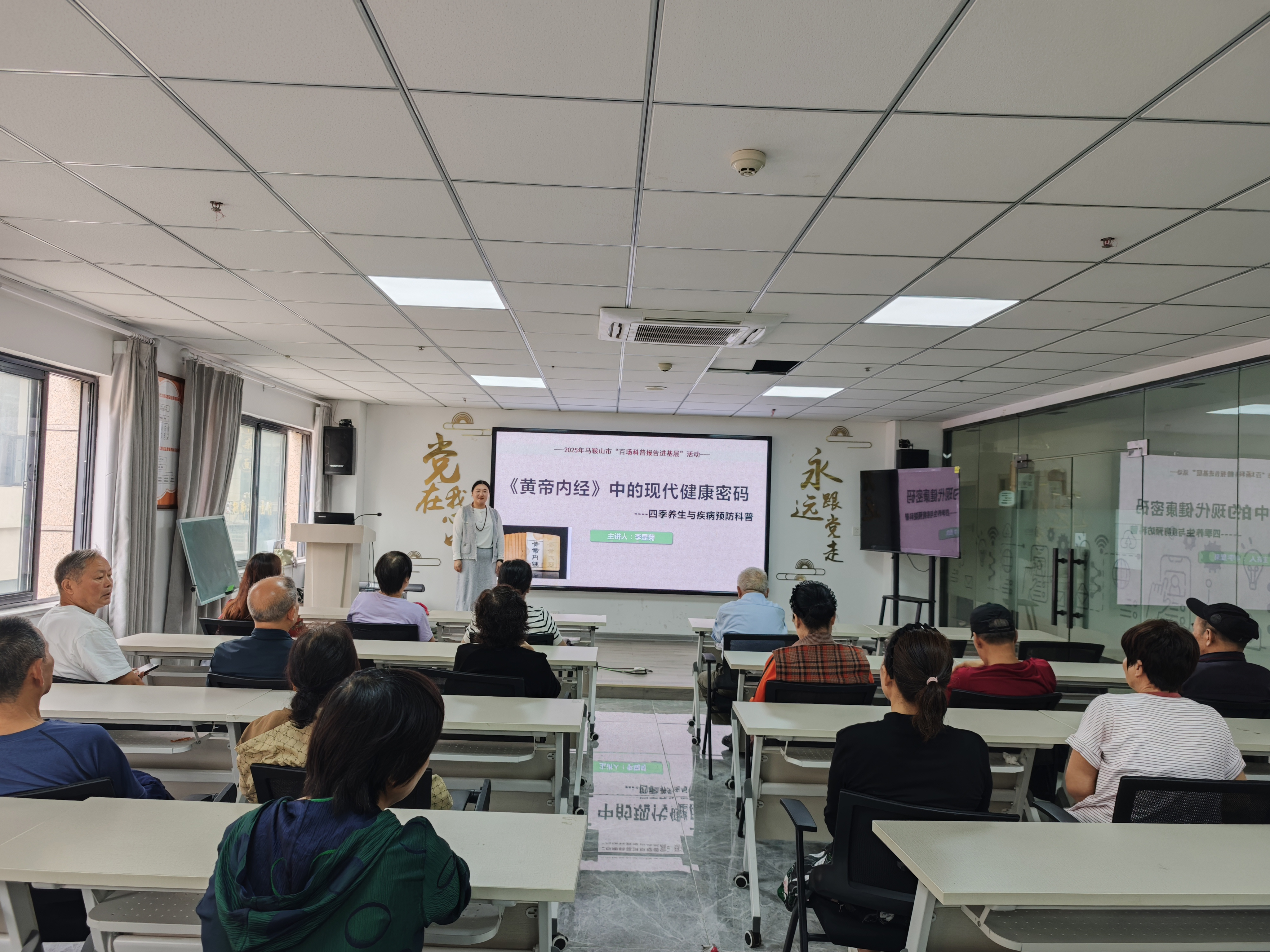 为弘扬中华优秀传统文化,普及中医药健康知识,提升社区居民健康素养,近日,我校管理学院健康服务与管理专业讲师李显菊应社区邀请,先后走进万达社区和石山社区,开展题为"《黄帝内经》中的现代健康密码——四季养生与疾病预防科普"的系列专题讲座。此次活动是"马鞍山市百场科普报告进社区"系列活动的重要组成部分,展现了我校教师服务社会、传播科学知识的责任担当。
