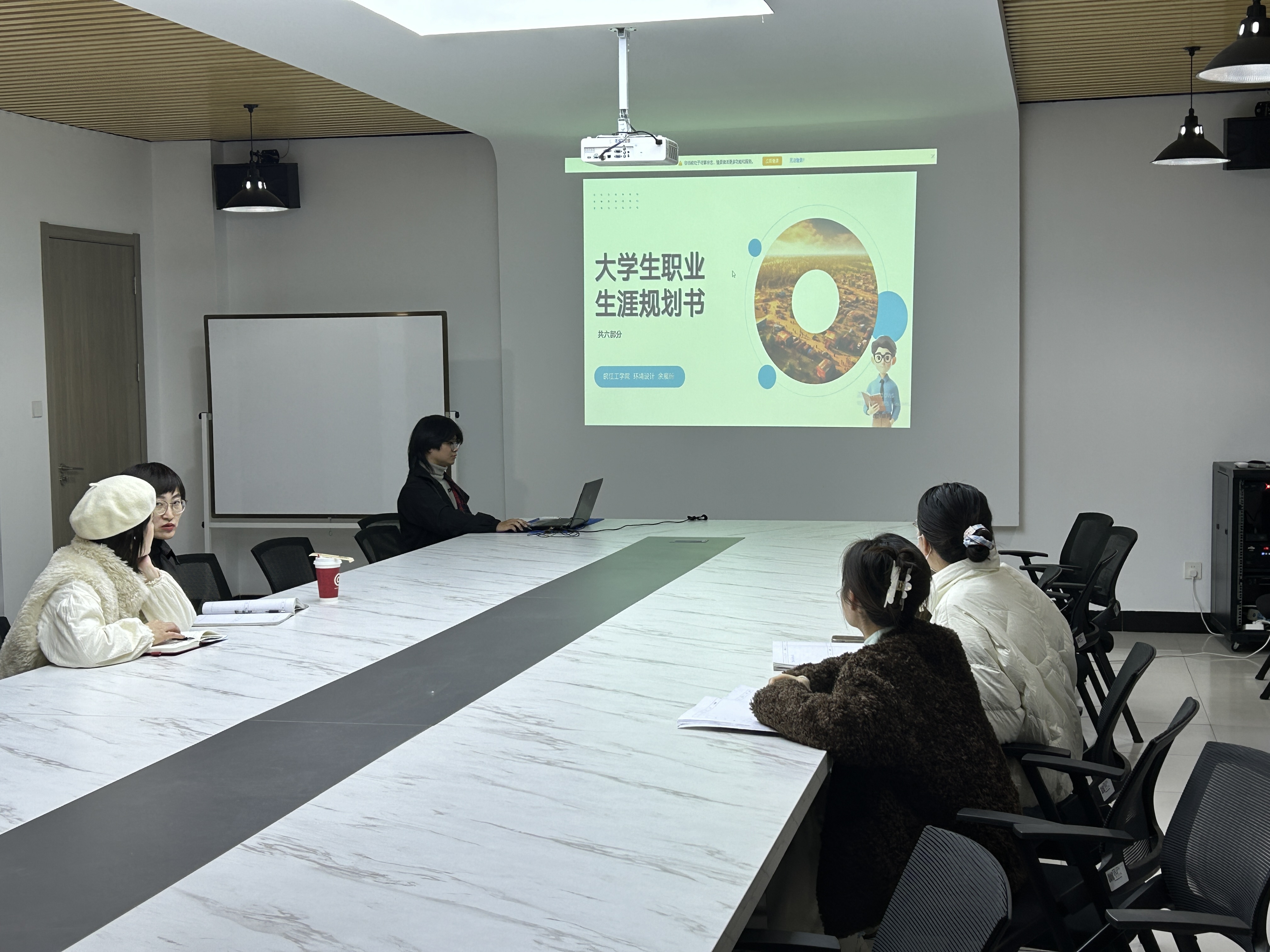 评审会上,7位参赛学生的作品依次亮相,涵盖产品设计、数字媒体艺术、环境设计等多个专业领域,展现出艺术设计专业学子独特的职业思考与规划视野。 其中2025级产品设计专业汪君以《以设计之翼,赴未来之约》为题,将产品设计专业素养与个人职业愿景相结合;2024级数字媒体艺术专业朱文乐的《数字绘梦,匠造未来》聚焦数字内容创作行业趋势,规划了从技术深耕到创意输出的职业成长蓝图;2024级环境设计专业余宸旸的《大学生职业规划》立足专业特色,围绕园林设计师行业清晰的职业认知和发展框架;2024级产品设计专业倪子妍的《挥洒汗水·墨香千年》以文化传承为核心,规划了自己想成为徽墨非遗传承人的职业方向;2024级环境设计专业孙璐璐的《清衿之志 履践致远》结合专业学习进度,制定了阶段性职业能力提升计划;2023级产品设计专业毕庆庆的《遗风雅韵颂千春,遗梦绚烂映华辰》将传统非遗工艺与现代设计理念相融合,展现了以设计传承文化的职业追求;2023级环境设计专业王宇航的《环境设计专业职业规划》则聚焦行业需求,明确了成为复合型环境设计人才的发展目标。