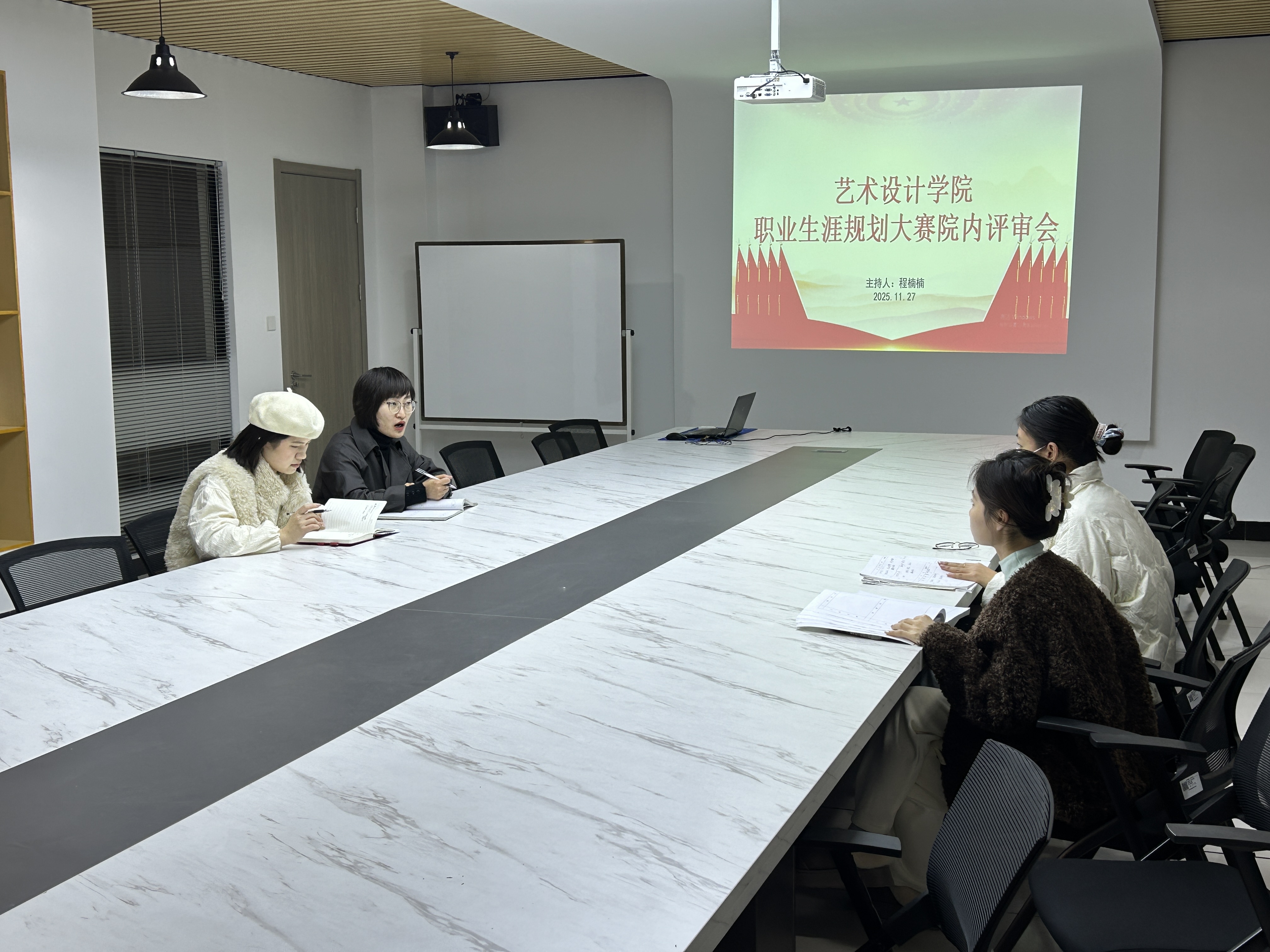 2025年11月27日下午,艺术设计学院职业生涯规划大赛院内评审会在学院洪雅楼203会议室顺利举行。会议由党总支副书记程楠楠主持。
