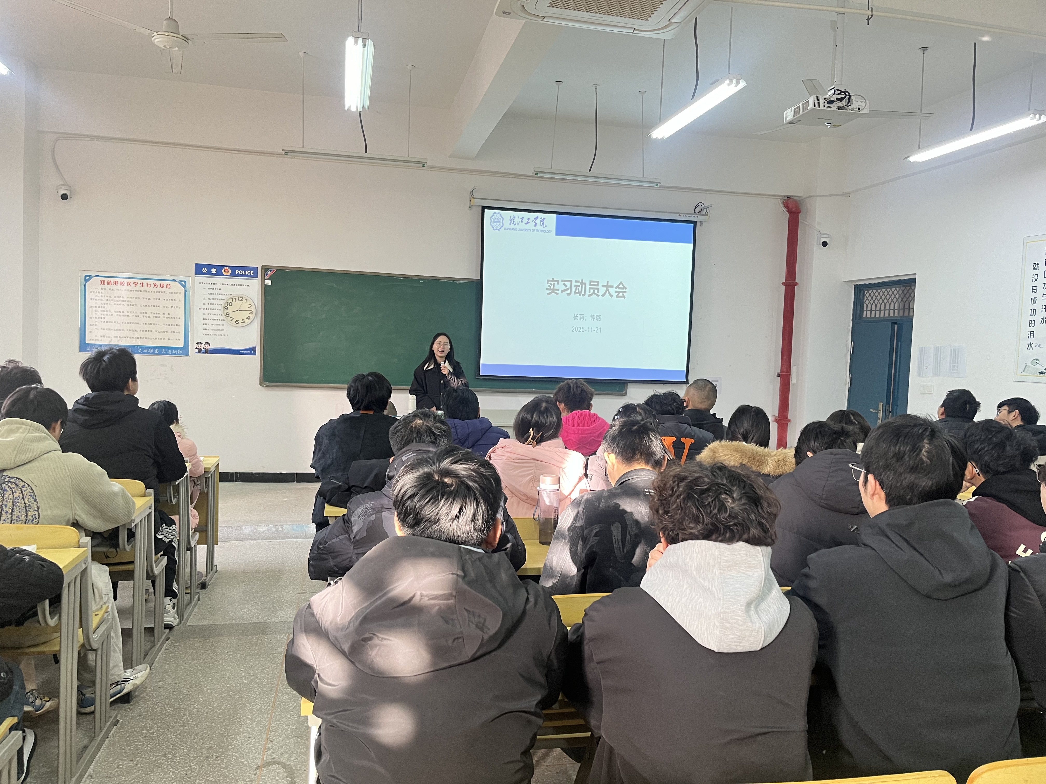 11月28日,实习动员大会在郑蒲港校区召开,指导教师钟璐主持会议并作动员讲话。会上,钟璐详细解读了实习的整体流程、核心目标及安全准则,强调认识实习是专业学习的重要延伸与实践补充,鼓励同学们珍惜难得的实践机会,主动观察、积极思考,将课堂理论知识与行业实际应用深度结合,做到学思践悟。