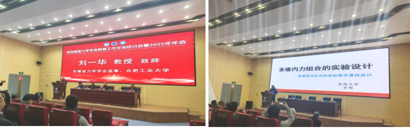 研讨会由合肥工业大学李孝宝教授主持,行业专家学者齐聚一堂,带来多场高水平专题讲座。其中,东南大学胥明老师以《多维内力组合的实验设计》为题,深入探讨实验教学创新路径;安徽建筑大学叶中豹老师分享《交叉融合,以赛促学:新工科背景下的力学教学改革探索》,解析学科融合与竞赛赋能的教学实践;无锡职业大学郁荣老师围绕《光测力学教学仪的研制与教学实践探索》,介绍教学设备研发与应用成果;安徽理工大学卢小雨老师则阐述《安徽理工大学工程力学专业人才培养模式改革与实践》,分享专业建设的宝贵经验。会议期间举行了安徽省优秀力学教师颁奖仪式,我院马鸣老师凭借在教学与科研方面的突出表现,荣获“安徽省优秀力学教师”称号。