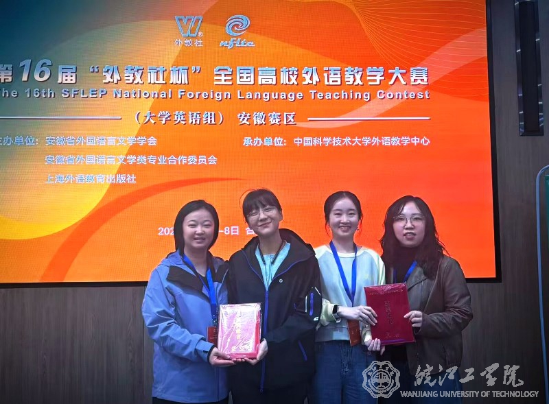 近日,经赛事主办方公示确认,在第十届“外教社杯”全国高校外语教学大赛(大学英语组)安徽赛区比赛中,由我校通识教育学院外语教研室的张健明、沈宣、祝加贝、韩冬四位老师组成的教学团队,凭借扎实的专业基础、出色的团队协作以及优异的赛场表现,荣获视听说组一等奖。
