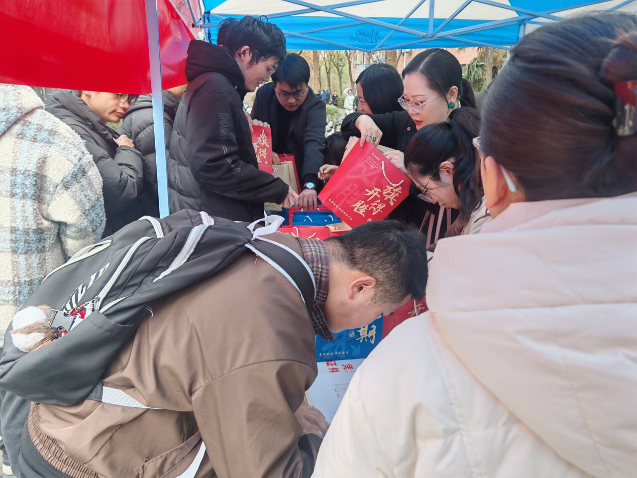 12月10日,土木工程学院精心策划的“考研暖心物资发放”活动在霍里山校区一食堂门口温情启幕。土木工程学院党总支书记王瑜、副院长李杰如、党总支副书记班兵、院长助理韩雪及各专业辅导员共同莅临现场,将满载学院期许与关怀的考研大礼包逐一送到每一位考研学子手中,为凛冽冬日里的备考之路注入满满暖意。