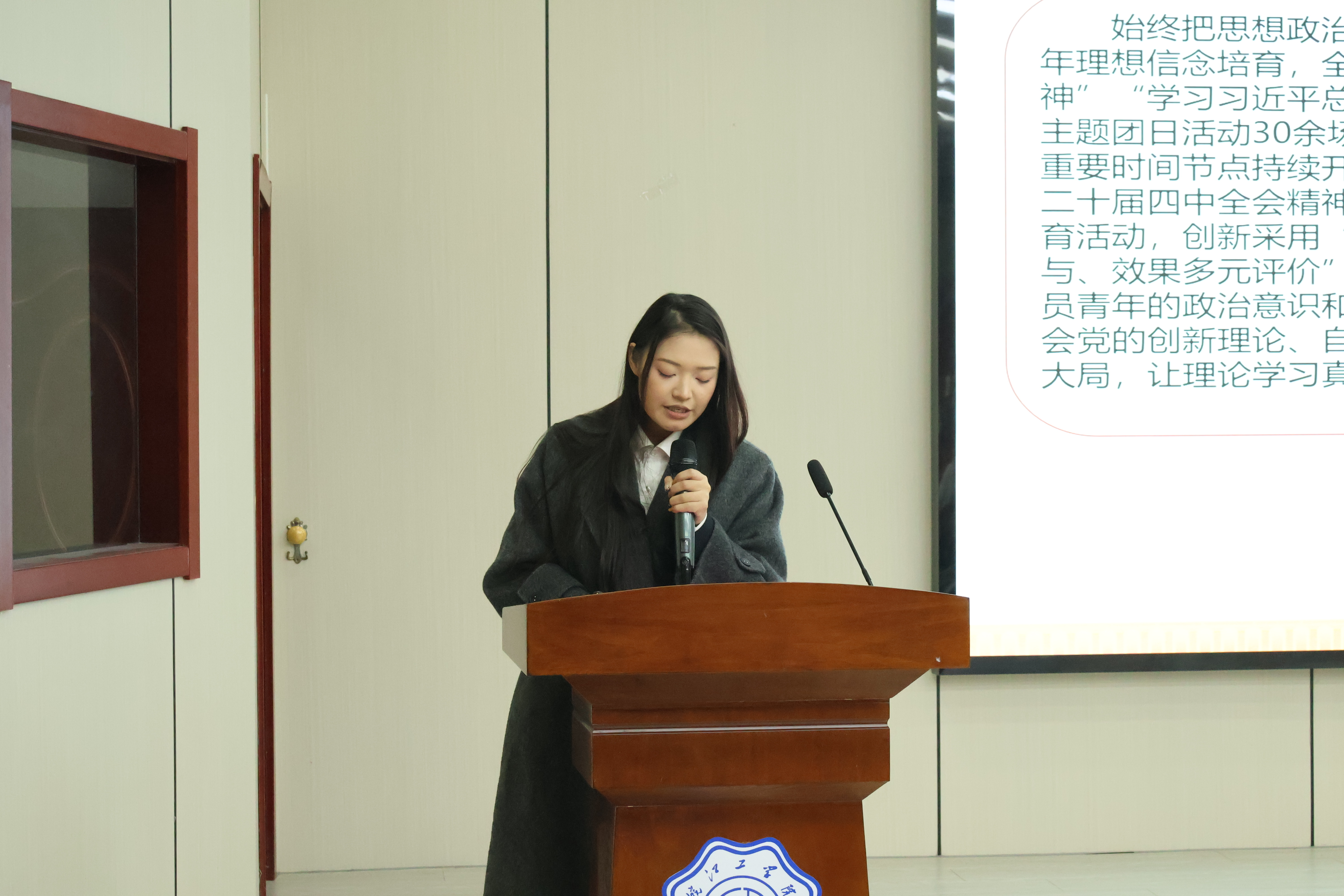 会议伊始,学院学生会主席团成员王浩然作年度工作汇报。他以“以评促建、服务育人、共创佳绩”为主线,从夯实组织基础、打造品牌活动、强化跨校区协同三个方面系统梳理了过去一年的工作成果,重点介绍了围绕学校合格评估开展的系列动员与服务保障工作,以及“天青杯”辩论赛、“大艺术家”等各项深受学院师生好评的品牌活动。随后,学院分团委学生副书记张謦令进行工作回顾。她总结了过去一年开展的主题团日与思想引领活动,并动员全体学生干部,应立足艺术设计专业特色,将理论学习的深度与创新实践的活力相结合,切实发挥好连接学院与广大同学的桥梁纽带作用。
