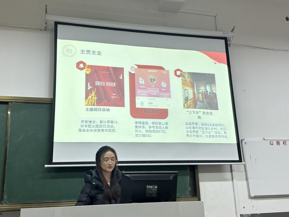 述职过程中,各团支书汇报内容详实、数据清晰,充分展现了基层团干部的担当意识与务实作风。例如,2023级计算机科学与技术专业各团支部采取“线上+线下”融合模式开展主题团日活动,团员参与率稳定在95%以上;2024级信息管理与信息系统专业各团支部着力打造社会实践与志愿服务品牌项目,相关做法与成效得到现场广泛认可。