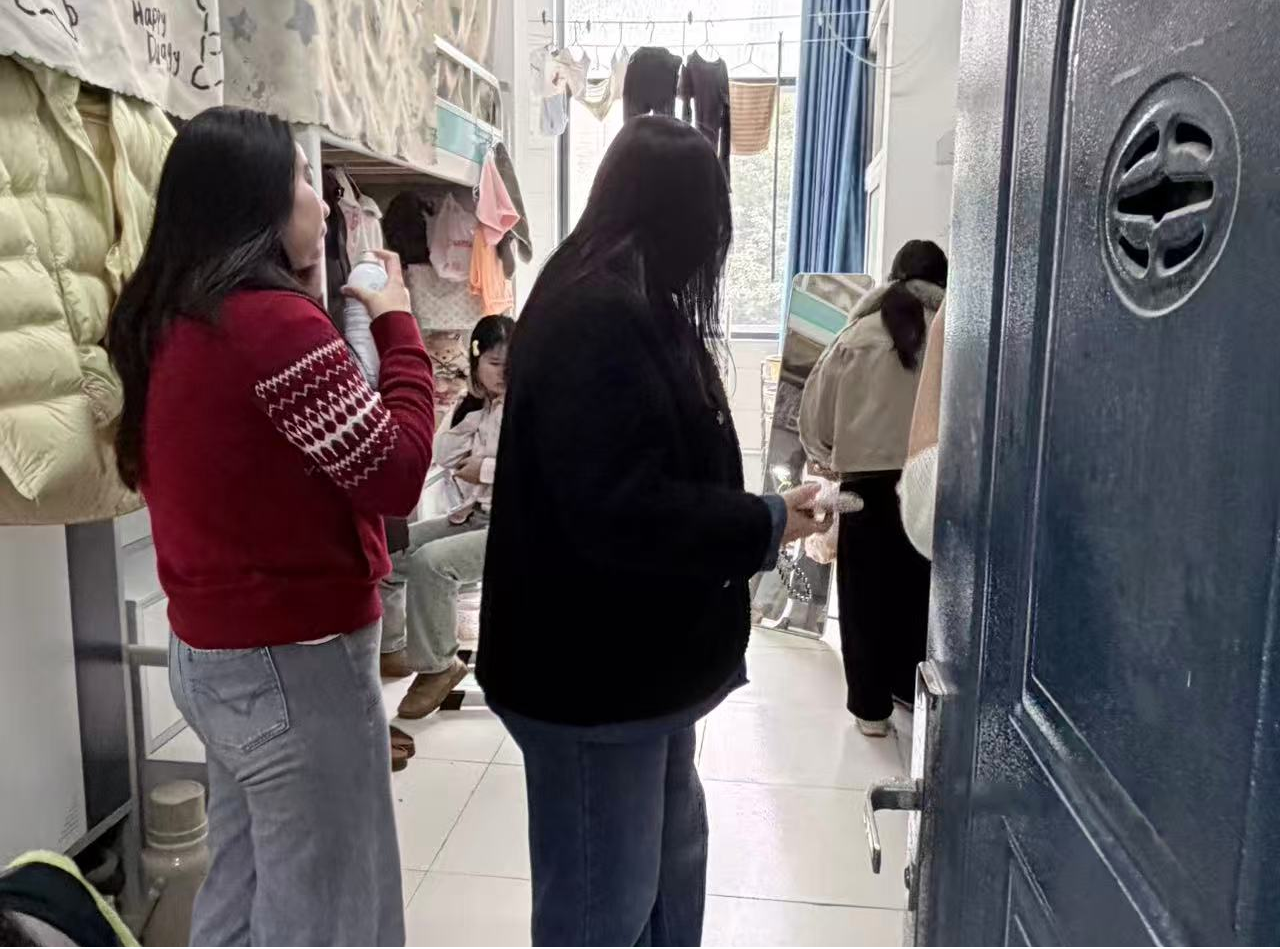 活动前,辅导员向同学们明确卫生标准与安全要求,动员大家全面清理地面、桌面、阳台、卫生间等卫生死角,规范物品摆放,保持宿舍通风整洁。大扫除过程中,同学们积极参与、分工协作,宿舍面貌焕然一新。随后,检查小组逐间开展安全与卫生核查,重点排查违规大功率电器、私拉乱接电线、消防通道畅通等安全隐患,同步检查内务整理、环境卫生情况。对检查中发现的问题现场指导整改,向学生普及宿舍安全与文明住宿知识,提醒大家严守安全底线、养成良好生活习惯。