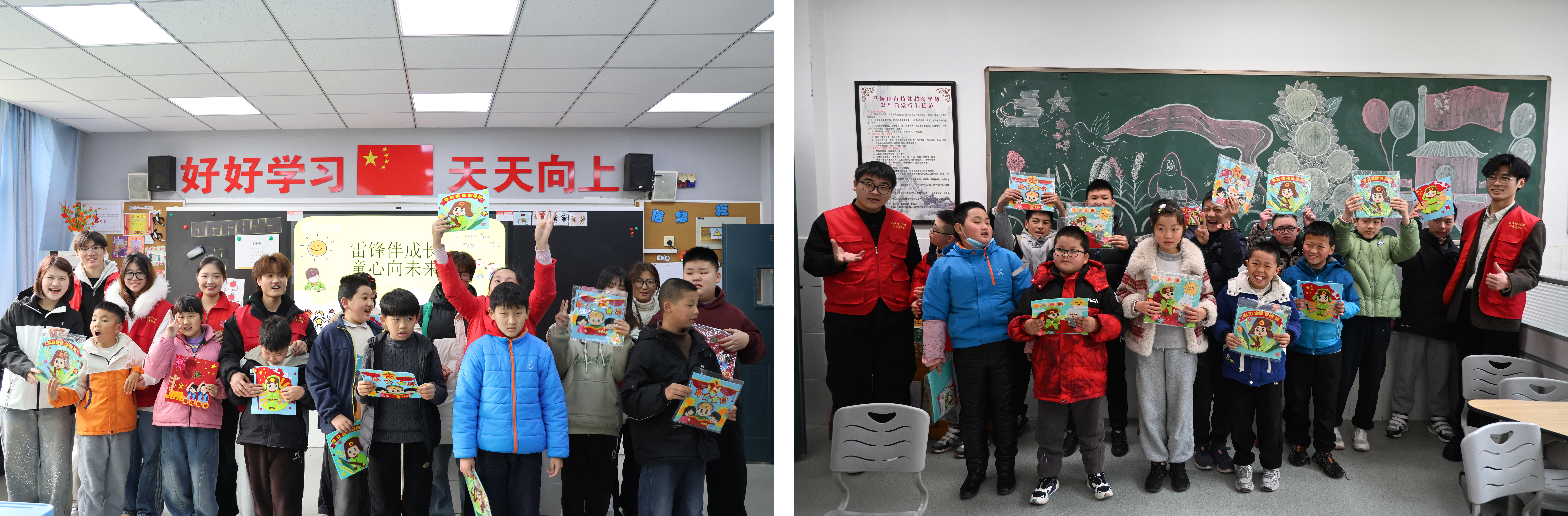为弘扬雷锋精神,让雷锋精神在新时代落地生根,艺术设计学院充分发挥专业特色与优势,学院学生党支部、分团委近日组织学生骨干们,赴马鞍山特殊教育学校,开展“雷锋伴成长,童心向未来”主题志愿服务活动,以美育润心、以关爱暖心特殊儿童。