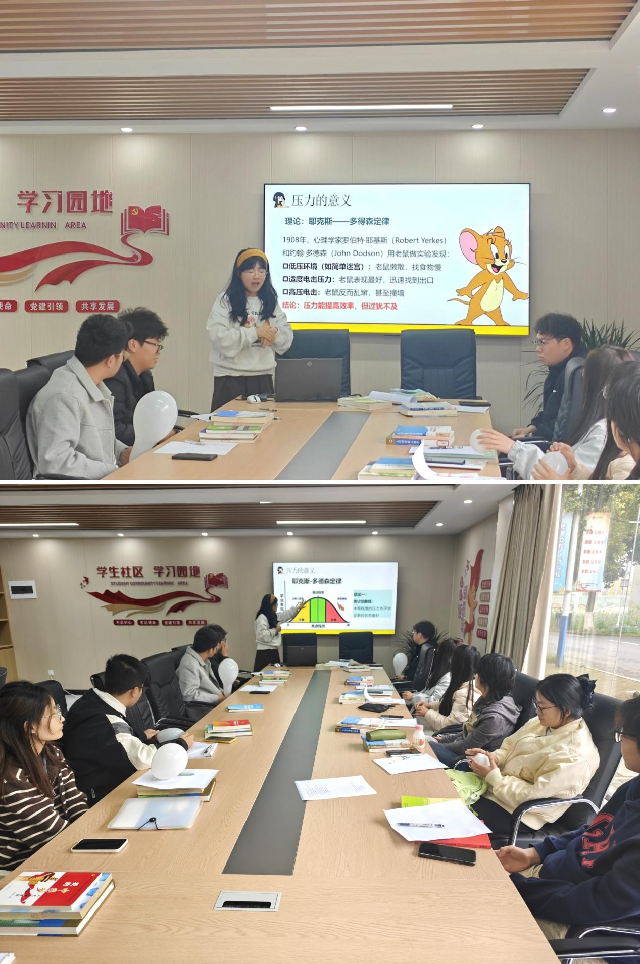 在“压力气球”环节,同学们通过气球膨胀程度理解耶克斯——多德森定律,认识到适度压力对提升效率的积极作用。随后的“压力源分享”中,大家坦诚交流备考困惑。