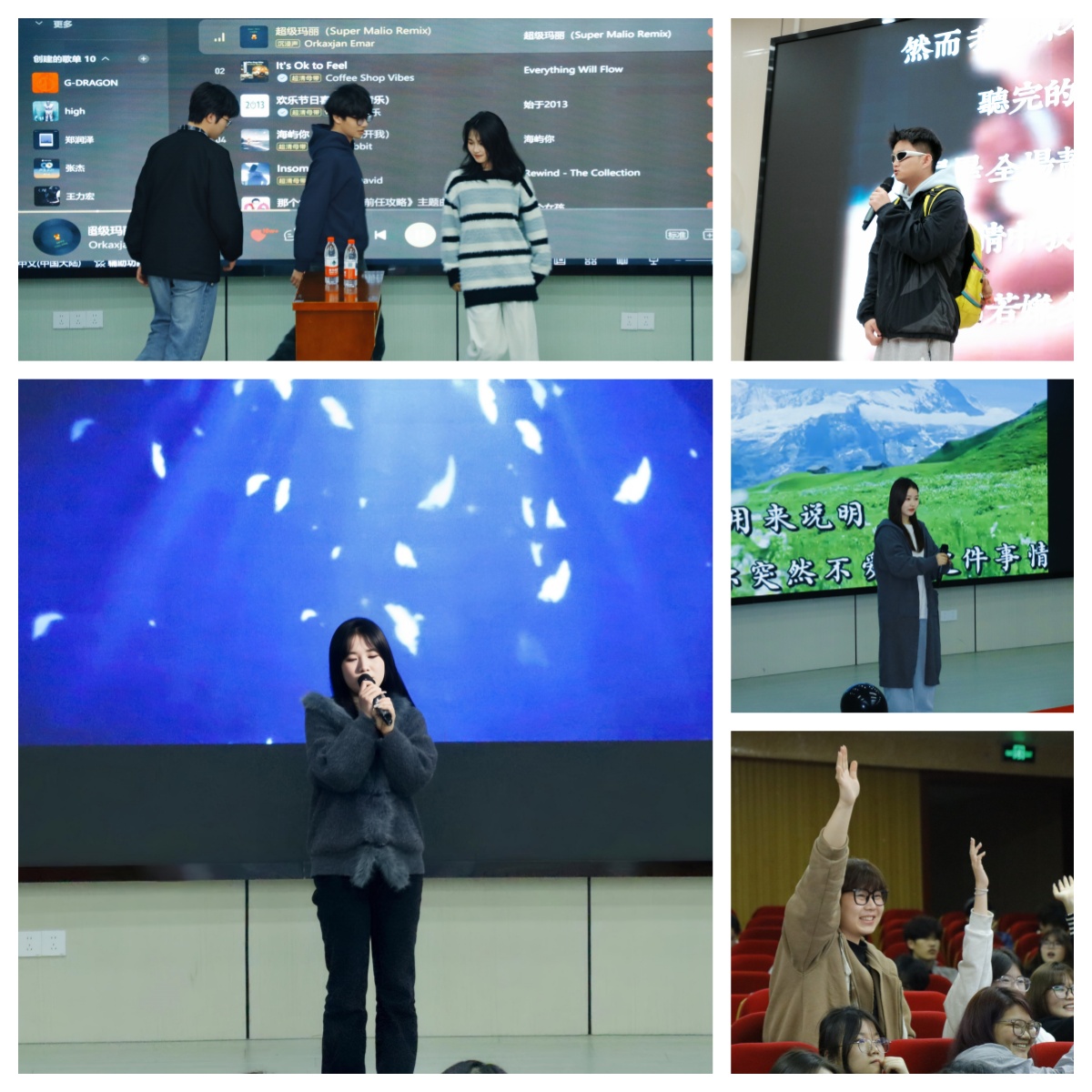 夜幕下的图书馆报告厅内灯火通明,座无虚席,氛围热烈。本次活动创新采用“十佳歌手评选+文艺联欢”双轨模式,既为热爱音乐的同学搭建了竞技的舞台,也通过多样表演与互动环节,让两校区的学生们在轻松氛围中拉近距离。参赛选手依次登台,带着对音乐的赤诚逐梦开唱,曲目风格涵盖抒情慢歌、动感流行、经典改编等多种类型。选手们以真挚的情感演绎作品,细腻的嗓音诉说青春心绪,嘹亮的歌声释放少年朝气,每一次演唱都赢得台下观众的阵阵掌声与欢呼。