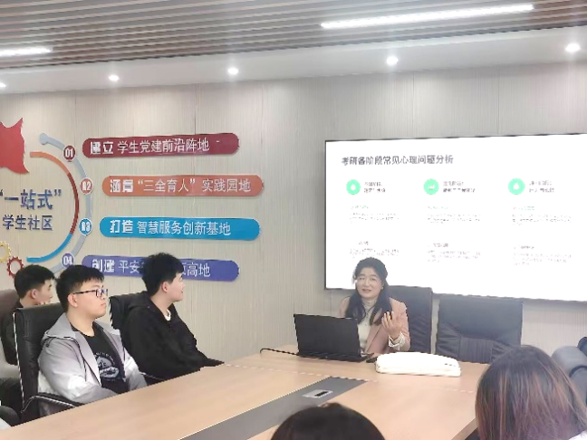 考虑到大三学生正处于考研备考的关键起步阶段,易产生焦虑、迷茫、压力过大等心理问题,讲座专门设置了考研心理疏导环节。陈田老师结合考研各阶段学生常见的心理状态,分析了压力产生的原因,针对备考初期的迷茫困惑、中期的疲惫懈怠、后期的焦虑紧张等不同问题,给出了切实可行的应对策略。老师强调,考研是一场持久战,心态决定成败,鼓励同学们学会接纳自身情绪,合理调节压力,通过规律作息、适当运动、主动沟通、目标拆解等方式,保持积极乐观的备考心态;同时提醒同学们,备考过程中不必盲目攀比进度,要专注自身成长,遇到心理困扰时及时向老师、同学或学校心理中心求助,避免负面情绪积累。