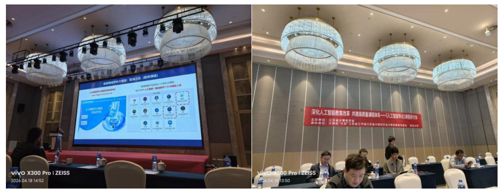 为深入落实国家“101计划”战略部署,推动江苏省计算机类专业建设与课程改革创新,全面提升计算机类专业人才培养质量,江苏省计算机学会于2026年4月18日在常州大学成功举办第十届江苏省计算机类专业建设与课程改革研讨会暨《人工智能导论》课程改革专题会议。我院人工智能教研室乐文革、刘稳两位教师应邀参会。