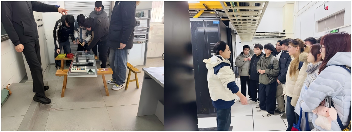 1月5日,学生前往宝信软件(安徽)股份有限公司,参观了企业展厅与技术工坊,聆听了关于工业互联网与智能制造的系统讲座,了解了马钢网络演进与5G+工业互联网的融合应用。1月7日至8日,实习队伍转入马鞍山明跃自动化科技有限公司,重点学习PLC编程与6轴机械臂的操作原理,在技术人员指导下进行了通信串口配置与自动化流程的实践操作。1月9日,学生们走进中国移动通信集团安徽有限公司马鞍山分公司,实地参观了通信机房动力中心、核心网5G机房与传输机房,系统认识了通信动力保障、5G核心网架构及光传输技术等关键设施与运维流程。