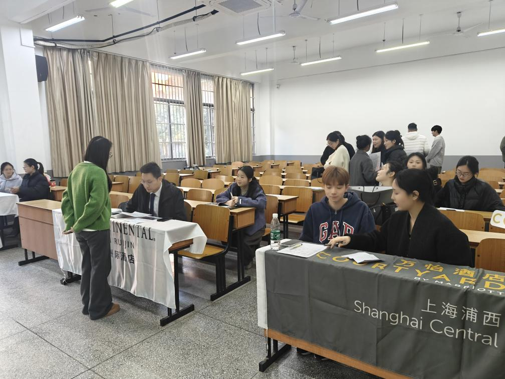 为深化产教融合、精准对接酒店行业人才需求,11月26日下午,管理学院酒店管理专业在A106和A108成功举办了实习双选会。本次双选会吸引了杭州万豪行政公寓&杭州余杭万豪行政公寓、张家港万豪酒店、上海瑞金洲际酒店、上海浦西万怡酒店、常州万豪酒店、苏州福朋喜来登酒店、苏州太湖万豪万丽酒店等七家优质酒店参会,为2025级酒店管理专业专升本学生提供了涵盖前台接待、客房服务、餐饮服务、行政服务、话务中心、礼宾等多个岗位的实习机会。