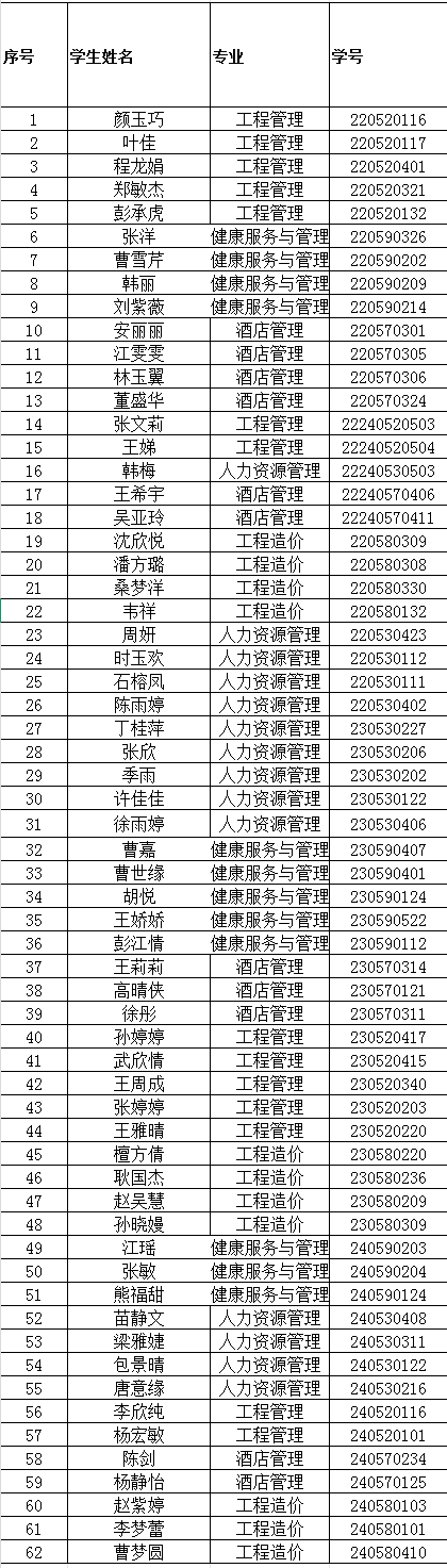 皖江工学院管理学院2024-2025学年国家励志奖学金名单公示