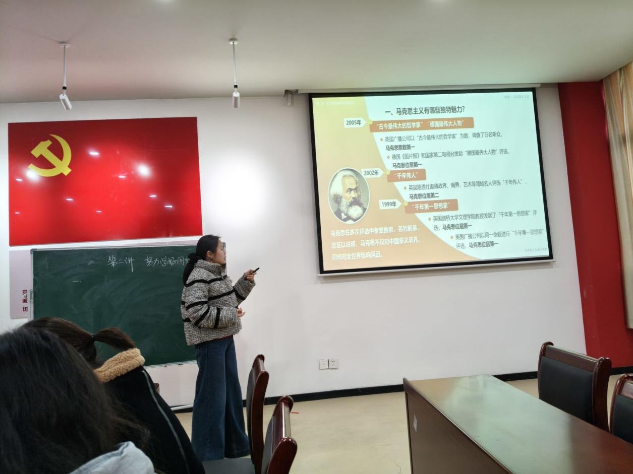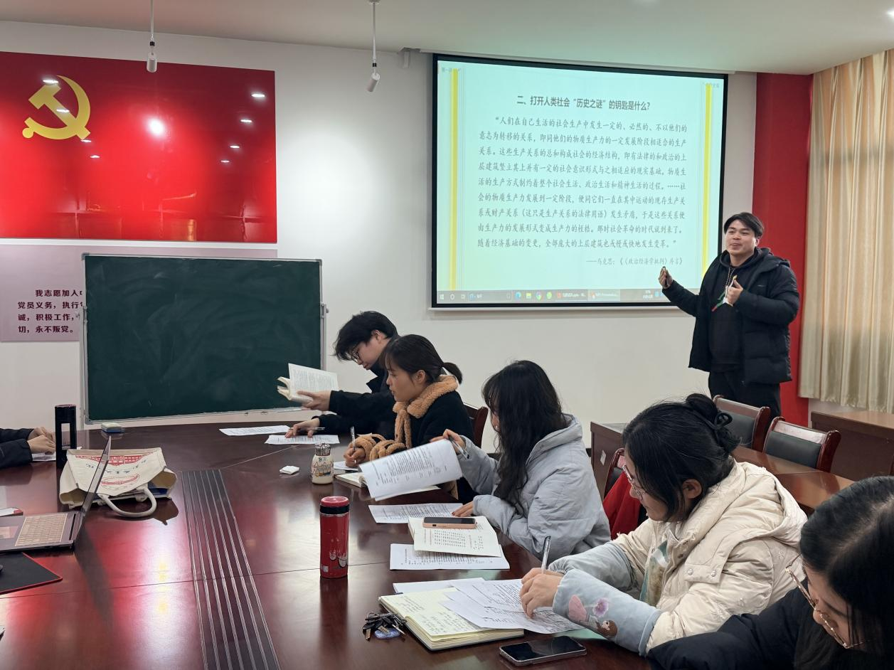 为进一步提升新入职教师的课堂教学能力,推动思政课教学质量不断提高,马原与道德法治教研室通过“老带新、传帮带”的方式,于2026年1月14日在党员活动室举办了新入职教师磨课试讲活动。教研室全体教师参与活动,其中非试讲教师担任评委。