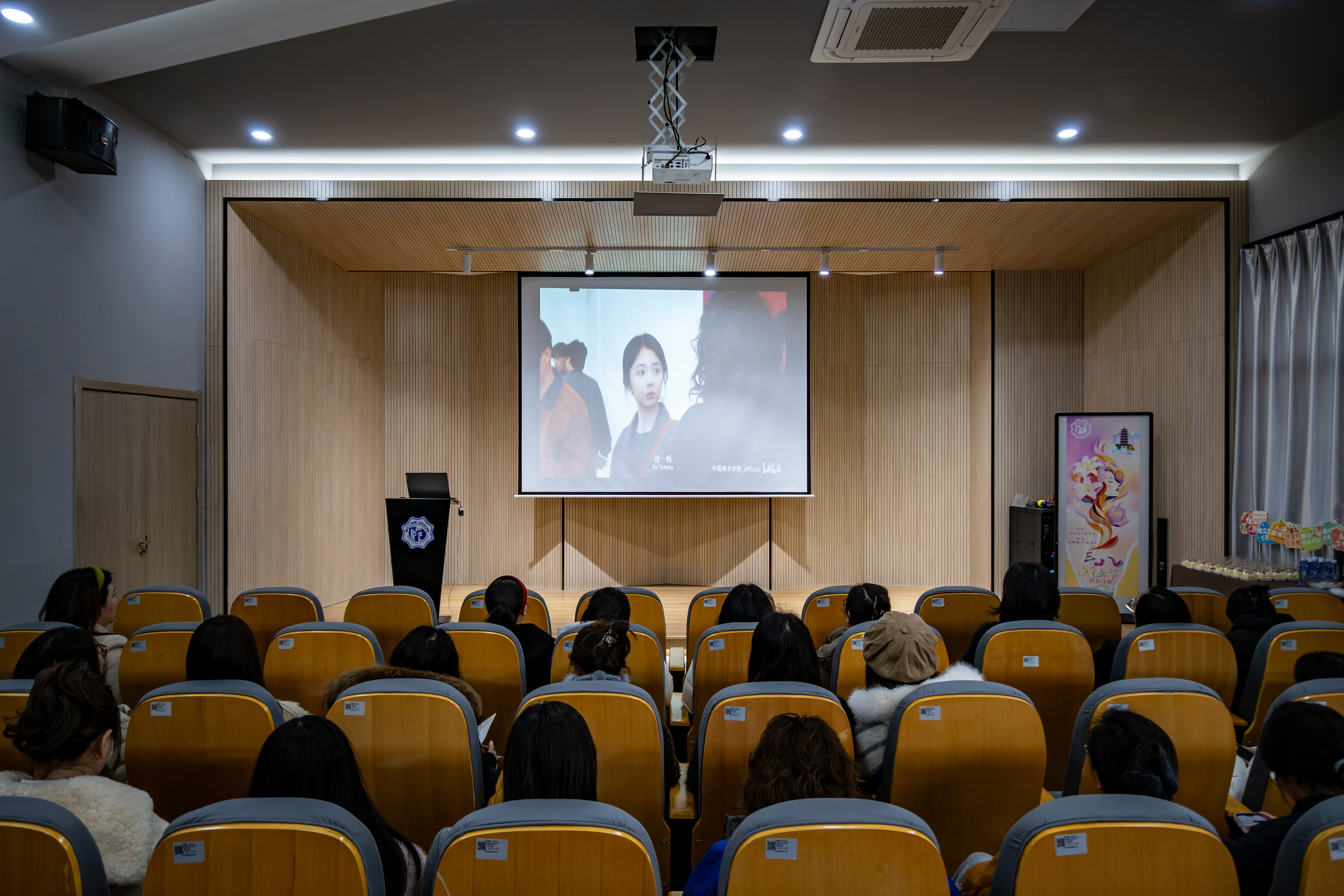 随后,全体人员共同观看微电影《春晖》。影片以细腻的镜头语言,讲述了教育工作者用爱心与责任温暖学生、守护成长的感人故事。光影的艺术叙事让在场教师深刻体会到“立德树人”的千钧重量,也更加理解了“春晖”二字承载的温情与担当。在“我身边的春晖”主题分享环节,几位女教师结合观影感受,讲述了她们在教书育人一线的真实故事。有的分享课堂上点亮学生梦想的瞬间,有的讲述深夜陪伴学生成长的温情,有的畅谈从教多年坚守初心的感悟。一个个平凡又动人的故事,生动展现了学院女教职工“实干开新局 巾帼建新功”的精神风貌,赢得了现场阵阵掌声。正如主持词中所言:“每一段故事都温暖人心,每一份坚守都值得致敬,正是这一份份‘春晖’般的关爱,汇聚成了学院育人路上最温暖的力量。”