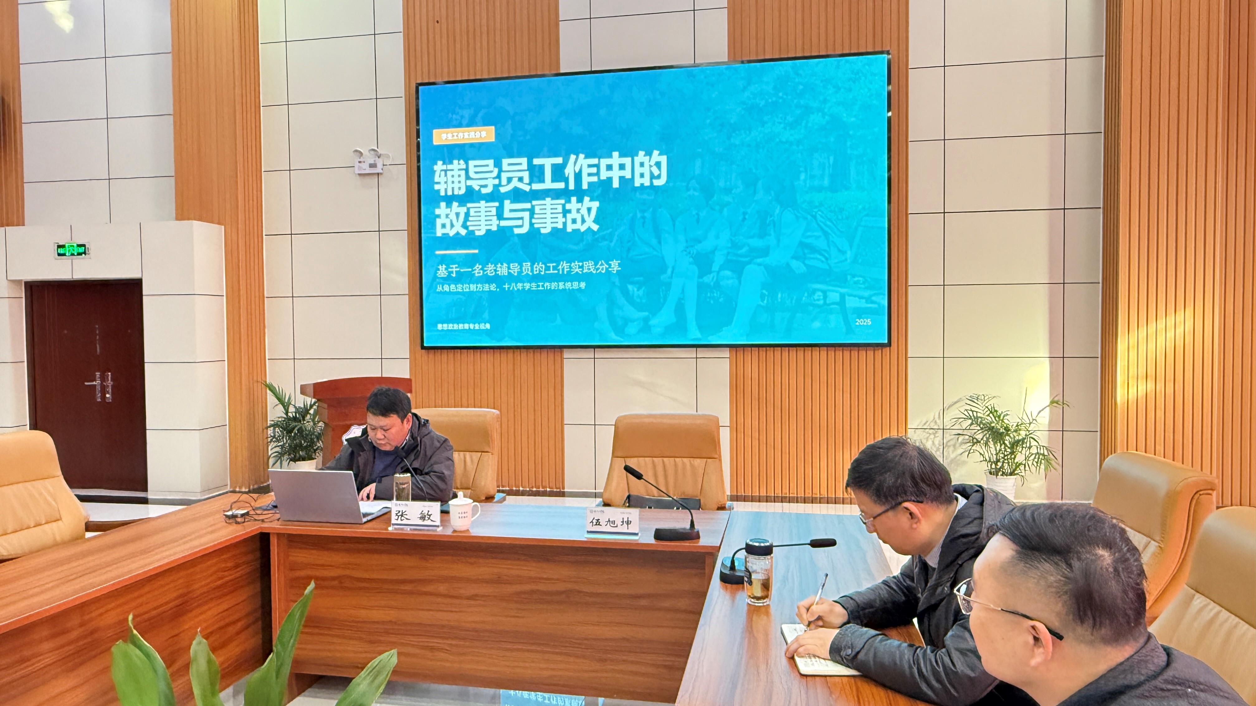 辅导员汇报结束后,伍旭坤作点评总结发言。他表示,通过此次总结会,对全体辅导员的工作有了更全面、深刻的认识,对大家2025年度的辛勤付出和工作成效给予充分肯定。结合汇报情况,他分享了三点感受:一是各位辅导员汇报准备充分,内容详实具体;二是工作开展务实扎实,成效值得肯定;三是大家态度谦虚诚恳,能够客观查摆不足。针对新一年度学生工作,伍旭坤提出三点工作建议:一是辅导员既要会做工作,也要会讲工作,尤其要讲好所带专业的“故事”,打造具有个人特色的工作“品牌”;二是校区辅导员队伍要凝心聚力、团结协作,树立“一盘棋”思想,形成工作合力,更好地满足学生成长成才需求;三是辅导员岗位是锻炼能力、提升素养的重要平台,希望大家珍惜工作岗位,多思考、多提升,始终保持善于学习、勤于学习、勇于探索的进取姿态,推动工作经验上升为理论认知,实现理论认知向科学方法的转化,不断提升学生工作科学化、规范化水平。